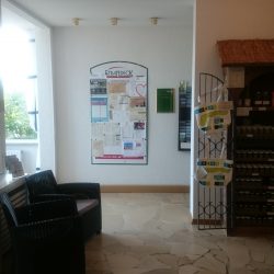 Im Bereich der Rezeption liegen Broschüren mit Informationen und Veranstaltungen auf der Insel aus. Auch unterschiedliche Spiele zum Ausleihen sind vorhanden.
