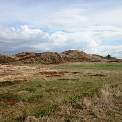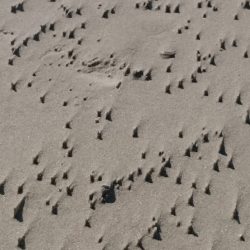 Dann endlich. Das Dünenhotel Strandeck liegt vor uns. Sofort fallen uns die drei verfransten Fahnen, die auf das Hotel hinweisen, ins Auge. Auf der kleinen Hotelterrasse direkt vor dem Eingang des Hotels waren die Stühle noch an die Tische geklappt, es wirkt auf uns etwas unwirtlich.
