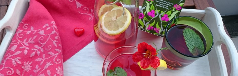 Bis ich bei unserem Denns Biomarkt in Wilhelmshaven dieses Rezept entdeckt habe. Seitdem bin ich ein riesiger Fan dieser Teesorte, allerdings nur als Eistee zubereitet.