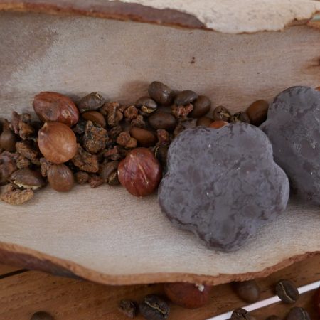 Zartbitterschokolade* 35% (Kakaomasse*, Rohrohrzucker*, Kakaobutter*), Dinkelvollkornmehl* 28%, Honig* 14%, Margarine* (Palmöl*, Wasser, Sonnenblumenöl*, Zitronensaft*), Kartoffelstärke*, Haselnüsse*, Aprikosenkerne*, Mandeln*, Meersalz, Bourbon-Vanille*