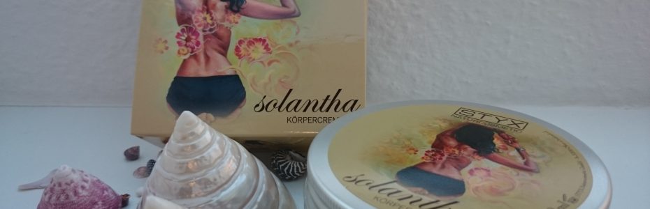 Die Körpercreme „solantha“ von Styx lässt sich gut verteilen und zieht schnell ein. Sie ist sehr reichhaltig und spendet den ganzen Tag über Feuchtigkeit. Der Hersteller beschreibt die Creme wie folgt: Fantasie und Traum, Wunsch und Verlangen. Umgeben Sie sich mit dem Mysterium anmutiger Schönheit. Hüllen Sie sich ein, in das Geheimnis sinnlicher Verführungskunst und entdecken Sie die Vereinigung edler Pflanzenöle mit reizvollen Düften zu einer außergewöhnlichen Pflege. Das trifft es auch.