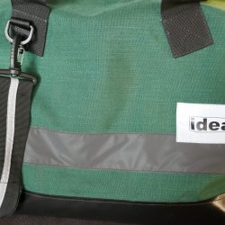 Toll auch der Sicherheitseffekt der Taschen, da alle Trageriemen (bei den Umhängetaschen) mit einem dicken, reflektierenden Streifen versehen sind. Auch in der dunkleren Jahreszeit wird man(n)/frau damit sehr gut gesehen. Der breite Leuchtstreifen gibt dem Trageriemen und somit auch den Taschen optisch den letzten Schliff.